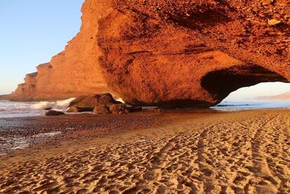 Se considera la playa más única de Marruecos debido a sus arcos marinos gigantescos. Los arcos brillan de color rojo al atardecer, haciendo una escena muy pintoresca. Es un gran lugar para sentarse y disfrutar de los espectaculares arcos del mar.